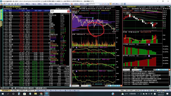 圖紅圈圈的十字中心如壓住滑鼠左鍵即可於技術線條滑動並即時更新查價
