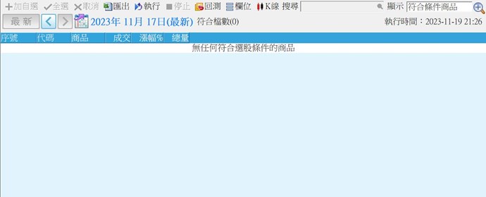 前幾天是定穎,當時前一天晚上選股也沒跑出東西,但現在往回看歷史選股就有。