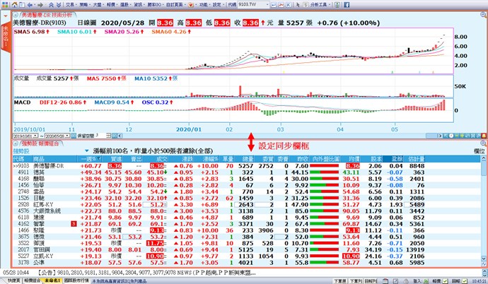 您好,建議可以使用「自訂頁面」來自行設定(特別報價+技術分析畫面),關於自訂頁面可參考官網功能教學【如何自設畫面(一)」