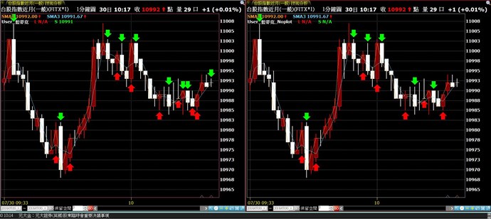 短均線站上長均線時,圖上會出箭頭,但是短均線跌回時箭頭會留著,不會消失,請問要怎麼寫出能即時更新買賣訊號的指標?謝謝!