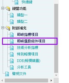 另外有關即時選股條件定義,可以在程式內按【F1】取得XQ使用說明:https://www.xq.com.tw/aphelp/DAQxqlite/default.htm