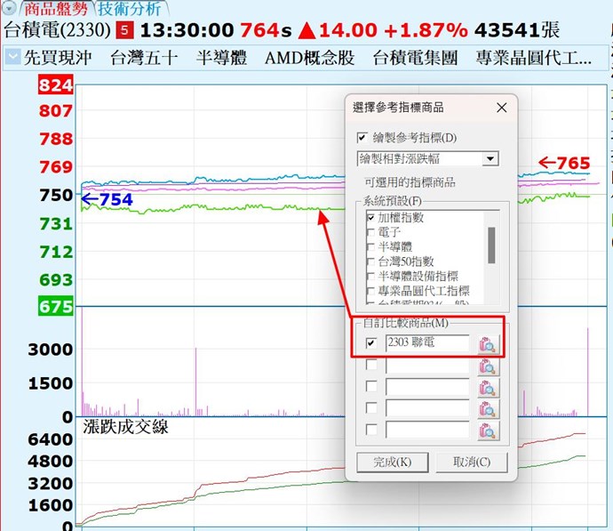 2.可以選擇參考商品的完整走勢嗎,不適只有相對漲幅