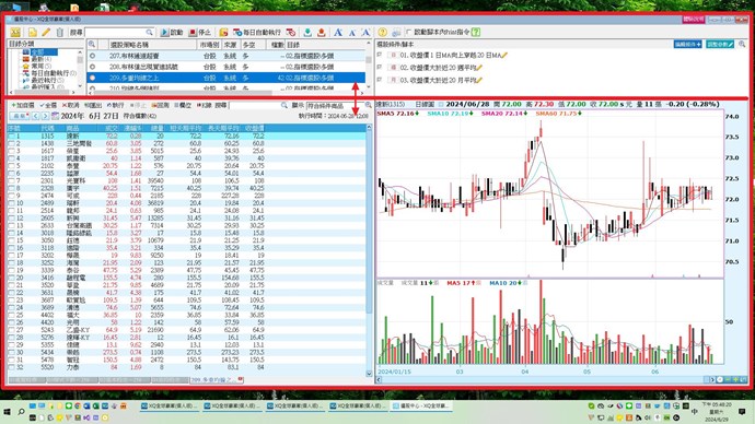 在XQ選股中心畫面中,畫面切割的邊界(紅線所示)常常會在不同位置,