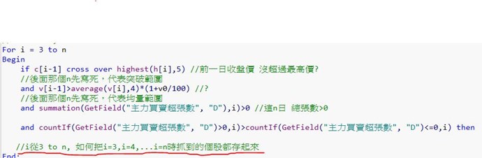 //i從3 to n, 如何把i=3,i=4,...i=n時抓到的個股都存起來