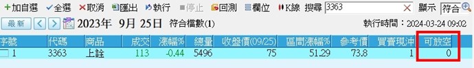 我用以下程式碼做例行性資料檢查,發現3363上詮資料錯誤,2023/9/25當天上詮實際上應為可放空才對,另外還有蠻多筆也有類似問題,例如2023/11/23迅杰當天也可放空才對,這應該是有個通案性的問題在,再麻煩修正了,謝謝。