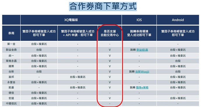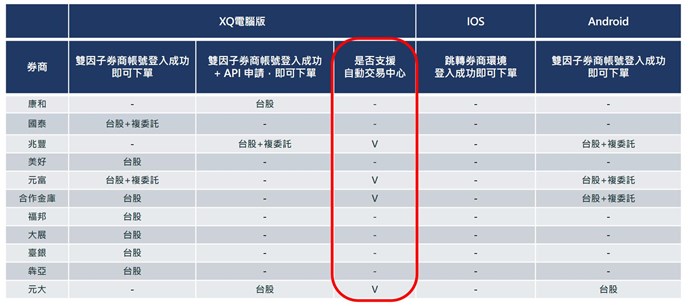 有哪幾家券商 有支援xq帳號登入,使用自動交易的功能?