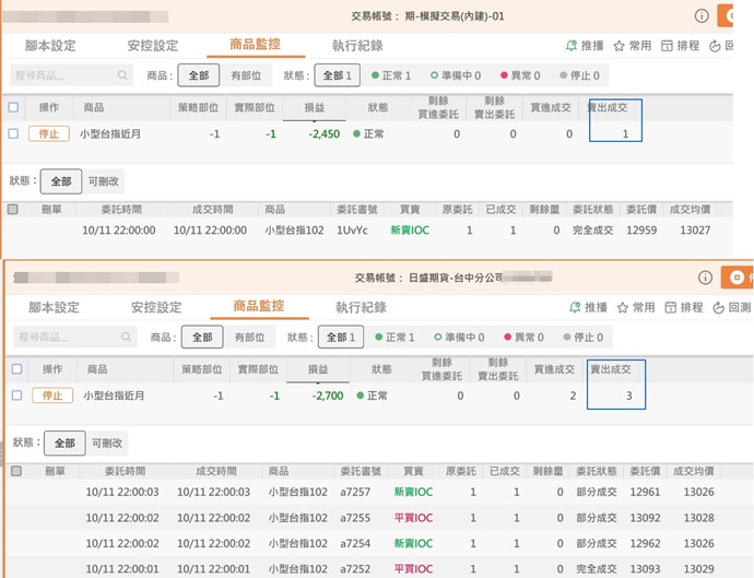 我有一個策略,同時跑日盛期貨的帳戶與模擬帳號,