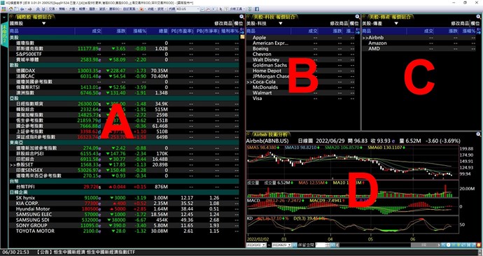 我一個頁面裡有三組報價組合與一個技術分析圖