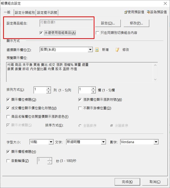 1、請將A、B、C欄框個別按右鍵/設定,報價組合要設定為"永遠使用這組商品"