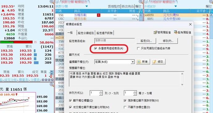 1、請將A、B欄框個別按右鍵/設定,報價組合要設定為"永遠使用這組商品"