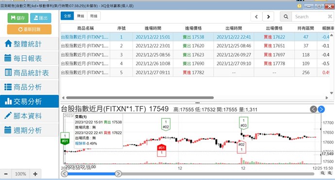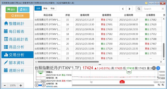儘管12/23有進場訊號,但前提是沒有部位,若12/22有部位且沒出場,則12/23不會有進場訊號。