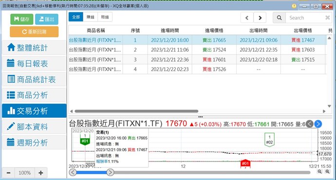 我已經附上腳本.以10分鐘回測2023年12月1日到2023年12月31日的資料.請你們幫忙回測一下是否和我回測的一樣