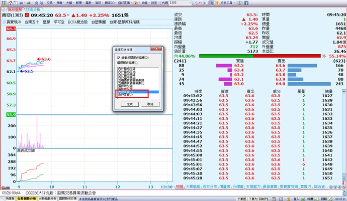 若已升至3.01.01版,可在個股商品盤勢按右鍵→即時指標,即可選擇新增的大戶買賣力與散戶買賣力指標