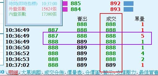 另第二張附圖為3163波若威3/21日盤中商品盤勢圖,右邊外盤始終領先內盤,股價也確實ㄧ路上漲,可是左邊底部漲跌成交線的綠線却ㄧ直居於紅線之上。