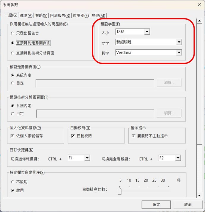 另外是否有更改過XQ的預設字型,若有修改,請幫忙提供字型的設定畫面(在功能表"設定"->"我的設定"->"系統偏好設定"->"一般"標籤)。