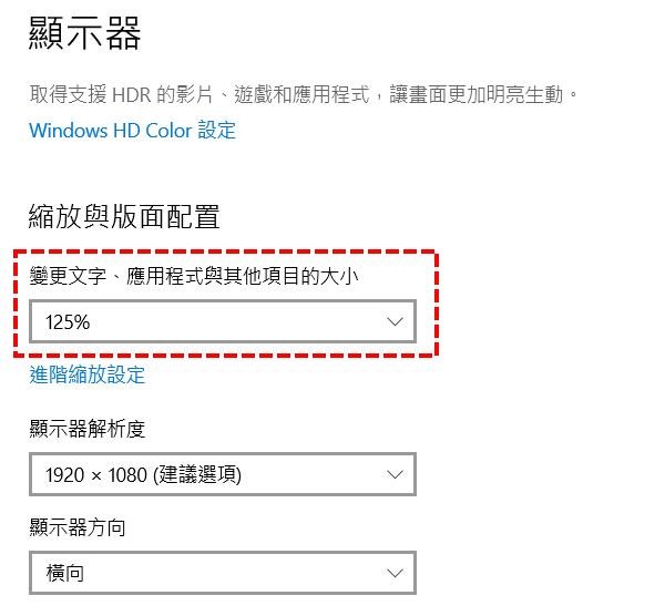您好,因工程師仍無法重現問題,請問目前設定螢幕解析度和縮放比是多少呢?
