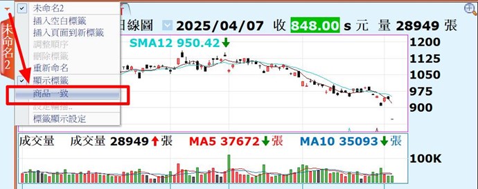 在第一個畫面查詢期貨商品時,會連動到第二標籤的商品須如何修正??