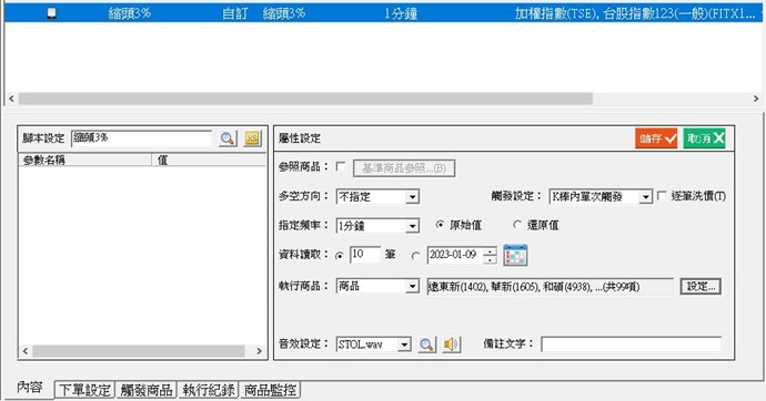 if barfreq <> "Min" or Barinterval <>1 then RaiseRuntimeError("請設定頻率為1分鐘");
