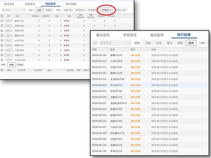 好幾個策略都長期沒更改,但近日啟動策略都會發生「執行時發生未知錯誤」,很多個股 (大約 1/4 ~ 1/3) 都顯示「異常」無法被啟動。
