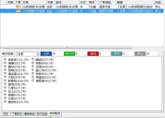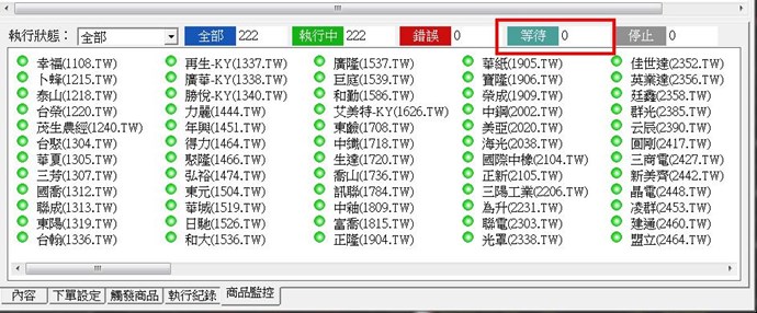 雷達開始啟動商品監控時 "等待"若還有個股在RUN
