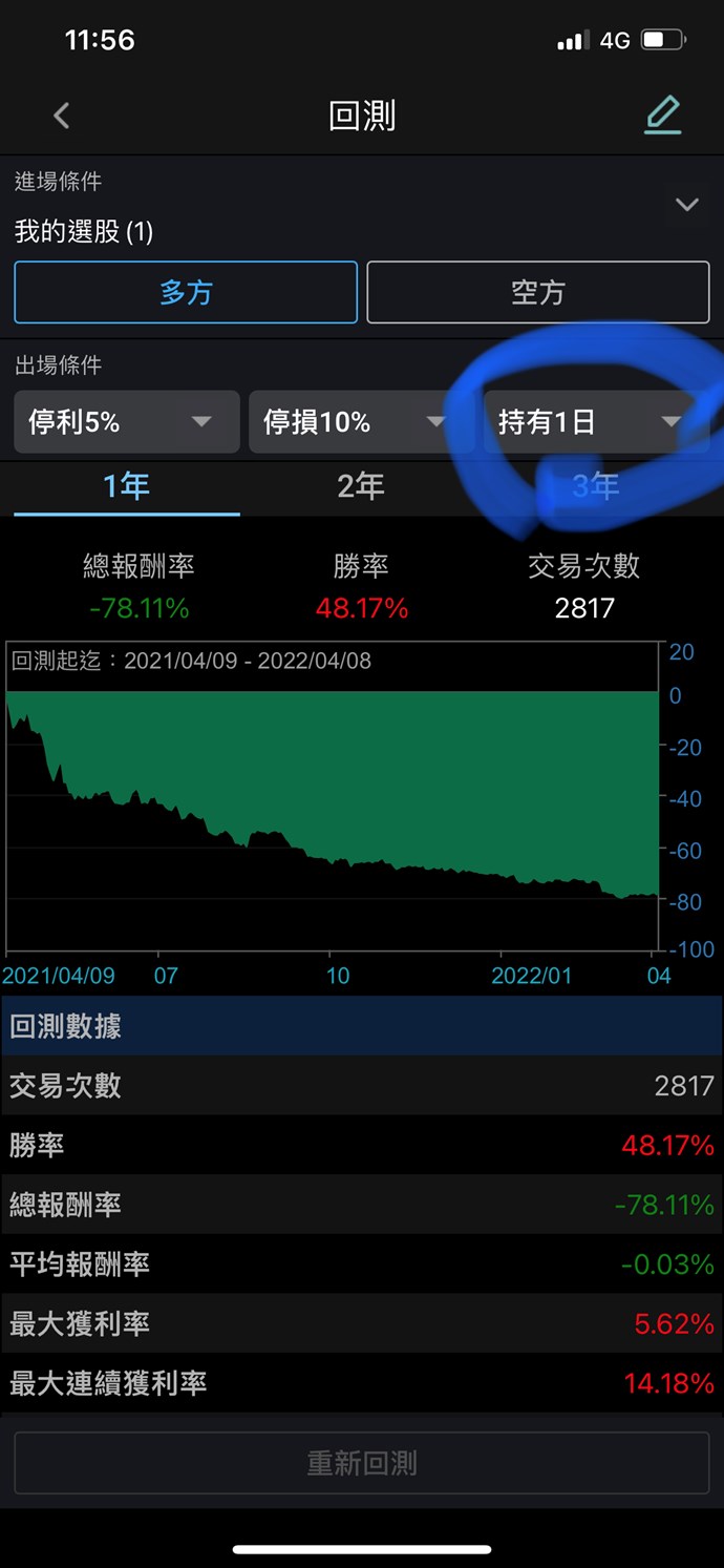 4. 停利和停損是以日線的「開高低收」進行判定,假設我設定5%停損,但是當天日線的最低價是-7%,這時候就會以停損-7%作為計算
