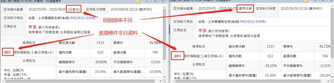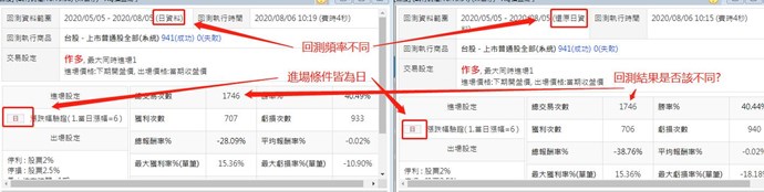 如果選股條件那有設定日以外的頻率,則回測時,回測頻率就算選用日頻率,該條件還是會用日以外頻率計算