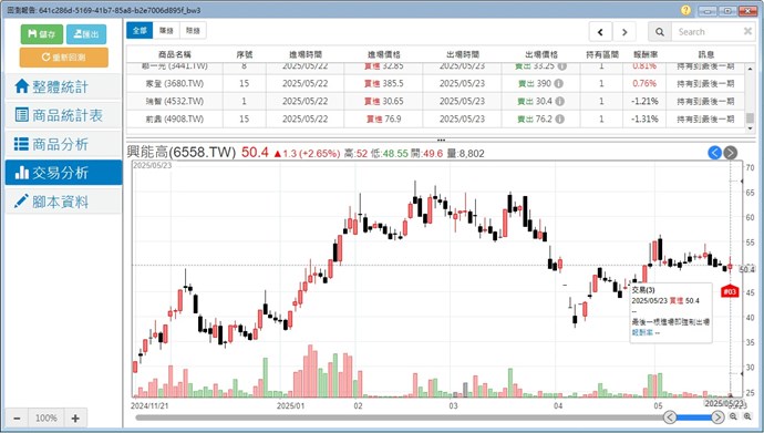 打開你的回測報告,並沒有你說的情況。以週五進場的這兩檔商品1477、6558為例,它們的日線圖價位都與商品匹配。
