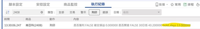 但我發現回測並不會實現我想要的邏輯 我把資料print出來看後 ,發現 持有天數會無止境的提升,這邊我附上檔案