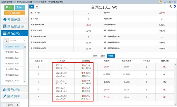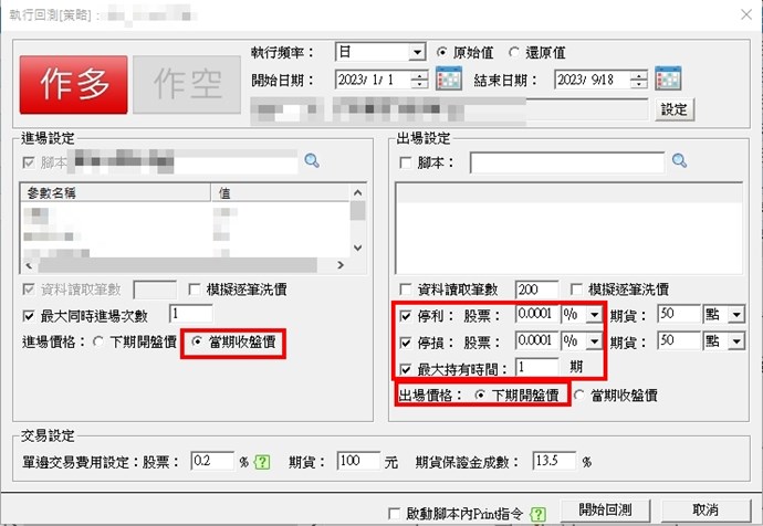 出場設定:停利停損都設定 0.0001%,最大持有時間1期,出場價格選 下期開盤價。