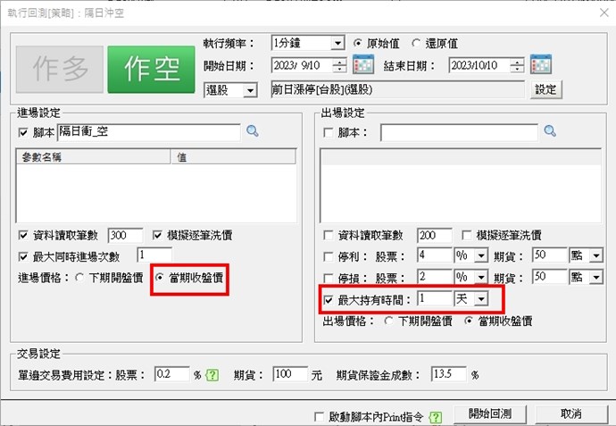 然後設定收盤的時候買回,或者您也可以設定停利%