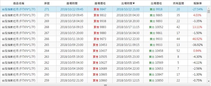 目前目測是觀察到序號271,多單進場價位9847,出場9918,這單明顯是賺錢的,但報酬率卻為負值?