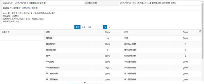 經相關人員確認,是因為2/12時調整伺服器導致選股策略中排行條件會發生錯誤,故回測出來的數字都是0。
