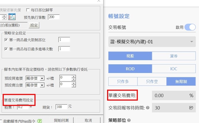 在回測設定交易費時,是否應該自己把證交稅的部分包含進去? 我一直以為交易費用是要包含手續費+證交稅