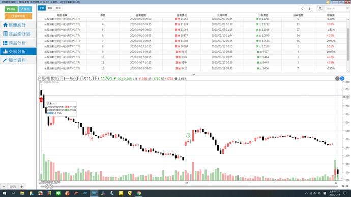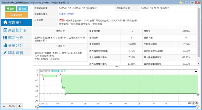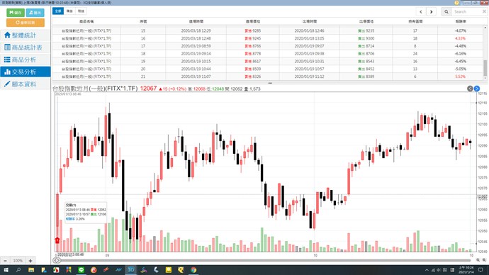 回測結果只有15筆交易的機會,然後細看交易分析裡頭,只有回測到2020/1月~2020/3月資料,