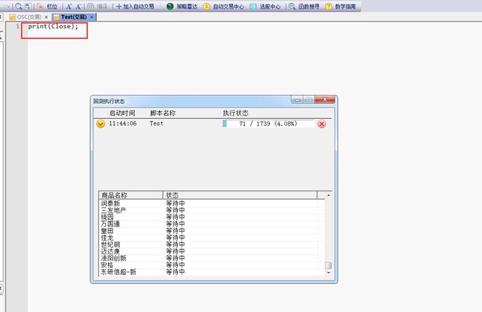 如圖所示,我的交易腳本只有一行print(Close)