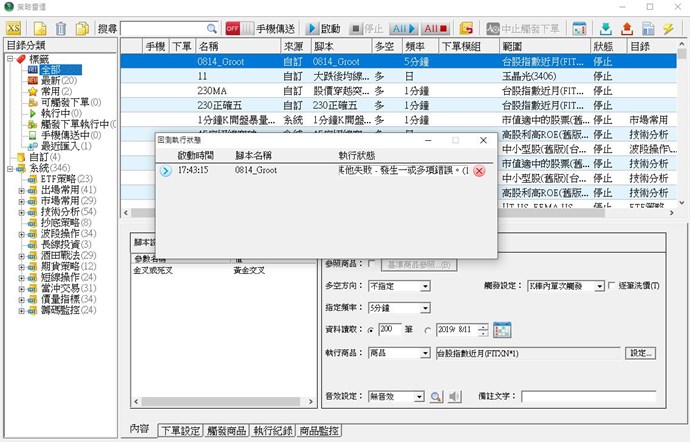 想請問小編,這個程式碼是在論壇內下載的,但請問為何我這樣設定,回測都顯示錯誤?