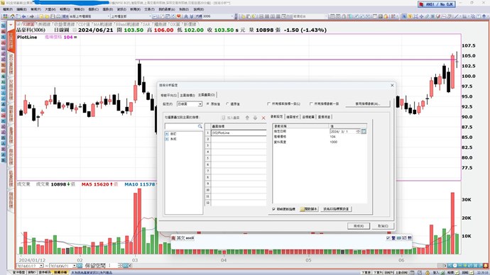 小編補充,plotline 裡面填入的位置是腳本運算過的第幾根bar,會從1開始直到 currentbar (最新1根Bar的數值)。