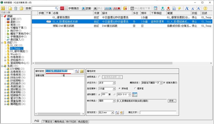 您的頻率設為1分鐘, close < close[1] 指的就會是1分鐘收盤價低於前1分鐘收盤價。