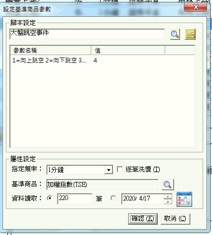 但是我只偵測開盤是否符合而已,只要開盤有符合,其他的腳本(頻率1分鐘)才會持續執行。