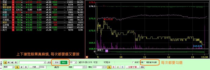 1.【下單列】增加,「買賣別」保留勾選(瀏覽股票後,若只想做單方向的空單或多單,要再次點選很麻煩,一般證券商都是保留買賣別)