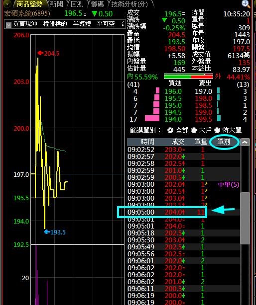 6/27交易中,如下圖,在【大單追蹤】盤面發現,5張就已經會被列為【中單】,但是09:05:00那批11張的卻不會被列為任何單別?? 請問原因為何啊?