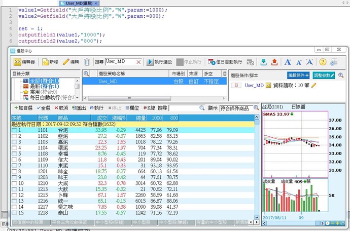 小幫手使用選股腳本撰寫是正常的,如最下圖,