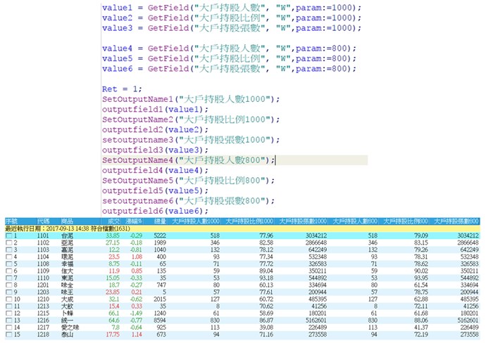 value1=Getfield("大戶持股比例","W",param:=1000);