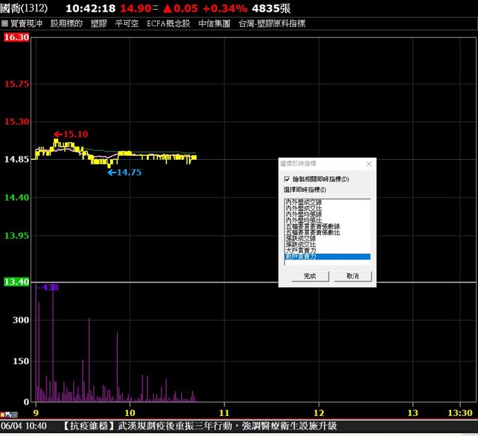 請您在商品盤勢畫面點選滑鼠右鍵-->即時指標,就可以找到囉