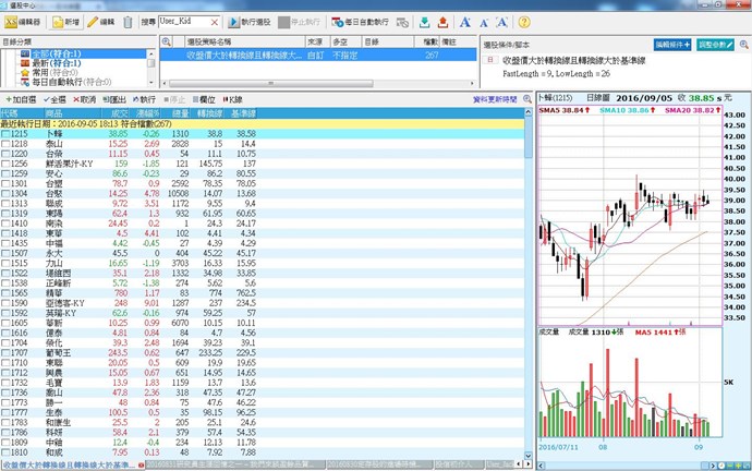 將 轉換線 與 基準線 的計算值,放置選股清單中,方便使用者查看。