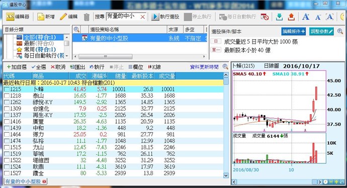 感謝回復, 那在請問一下, 這樣回測的時候, 他會用每天的 有量的中小型股 去當標的, 還是用我最近執行過的結果當標的.