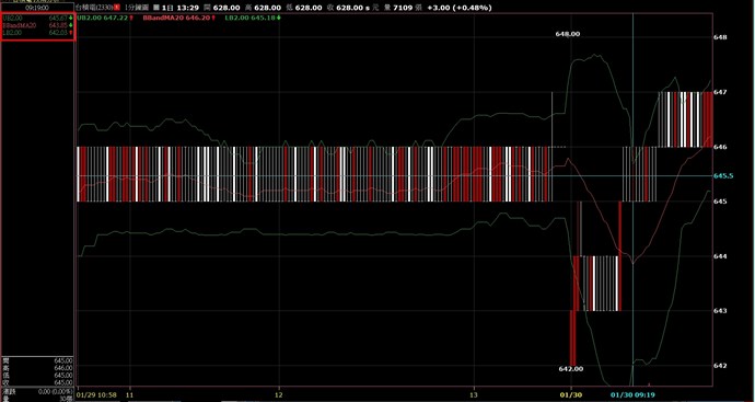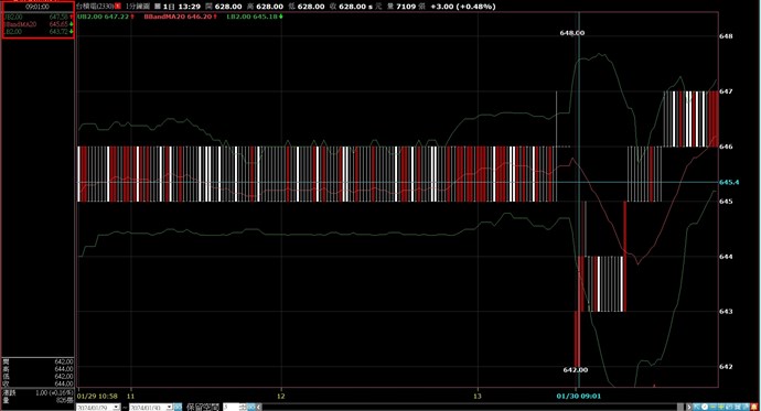 如何在自動交易腳本內,選擇日逐筆頻率時,能使用1分K的布林指標值?