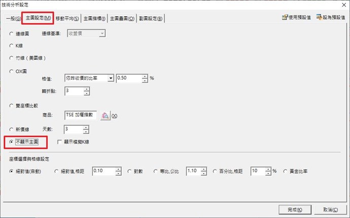 請問如何把k線圖的k棒消除, 只顯示主圖副圖指標