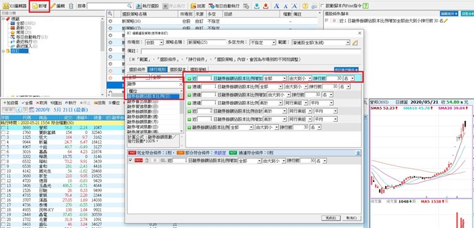 例如:選擇"近1日融券餘額佔股本比例增加全部由大到小排行前30名"