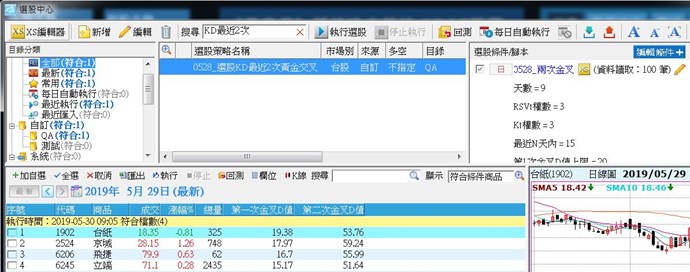 5. 加入選股後,將資料讀取筆數設為 100,有足夠的筆數算出來的KD數值才會正確。